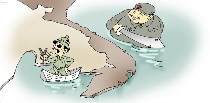 Ðó là hồi xưa! Còn bây giờ ngoài Biển Ðông, đại ca Tàu cộng muốn đôi co, gây lộn gì với thằng Phi, thằng Mã, thằng Nam Dương thì đại ca cứ làm! Em không dám ‘lan can’ tới!