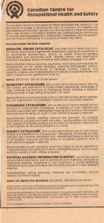 Mẫu tin tuyển nhân viên của CCOHS trên báo The Globe and Mail