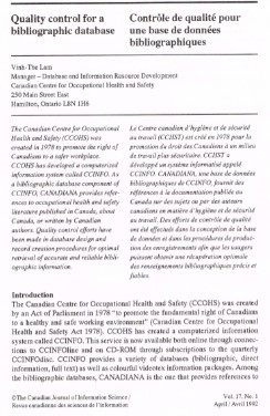 tôi đã thủ đắc thêm kiến thức và kinh nghiệm thực tiển trong việc thực hiện, phát triển và quản lý các Cơ sở Dữ Liệu (Database Management). Nhờ vậy, tôi đã có được bài viết đầu tiên được đăng trong tạp chí chuyên môn về thông tin của Canada: “Quality Control for a Bibliographic Database”, Canadian Journal of Information Science, v. 17, no. 1 (1992), tr. 24-31, như trong hình bên dưới đây: