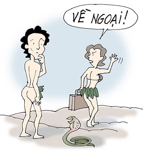 Harry Úc gốc Anh; nên nó được thừa hưởng óc hài hước của Chaplin, Vua Hề Sạc Lô. Có lần, nó đố tui là: “Trong nhân loại, ai là người phụ nữ duy nhứt lúc tức giận đã không dọa chồng là em sẽ xách vali về sống với mẹ em?” Tui bí. Harry cười hí hí trả lời là: “Bà Eva!” Tui nói: “Ờ nghe có lý, Rồi tui hỏi nó: “Tui thấy vợ chồng Úc đi ‘shopping centre’ hay nắm tay nhau bộ nó sợ con vợ nó lạc mất hay sao? Harry trả lời: “Hổng phải Úc sợ con vợ nó đi lạc đâu. Lạc nó còn mừng. Không phải “romantic” (tình tứ) mà vì “economic!” (kinh tế). Buông tay em yêu ra, em cứ mua sắm hoài tiền đâu chịu cho nó thấu?” Ờ nghe Harry cắt nghĩa lại cũng có lý”.