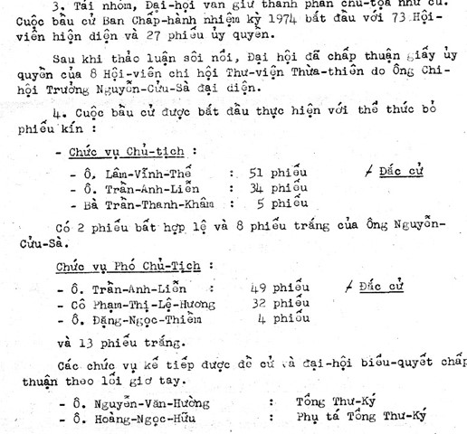 Đầu năm 1974, với sự khuyến khích của anh Nguyễn Ứng Long, tôi đã ra ứng cử chức vụ Chủ Tịch Hội Thư Viện Việt Nam (HTVVN) cho nhiệm kỳ 1974, và tôi đã đắc cử: