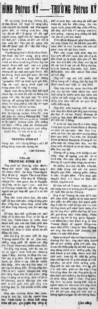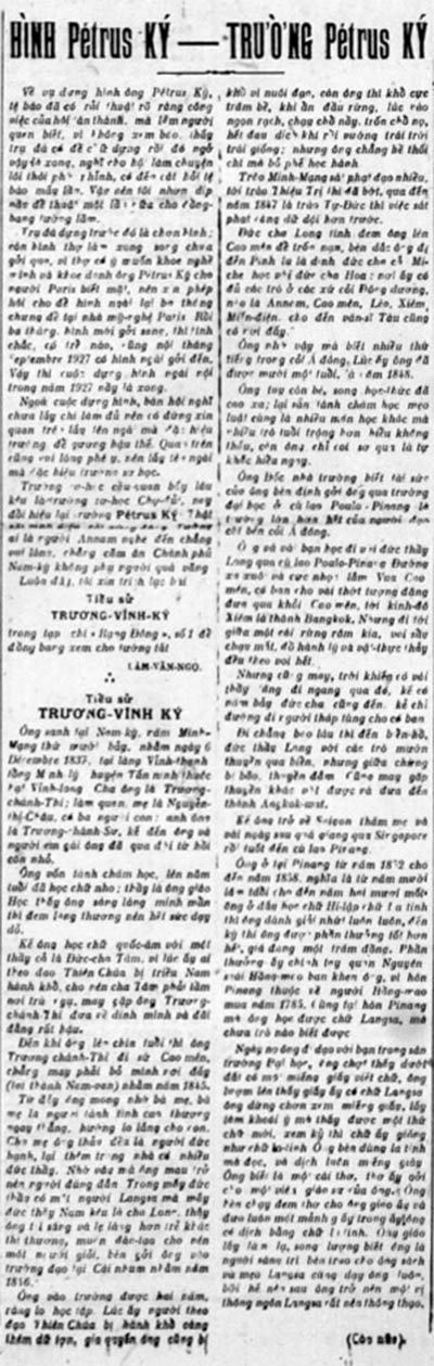 “Về vụ dựng hình ông Petrus Ký, tệ báo đã có rải thuật rõ ràng công viêc của hội tán thành, mà lắm người quen biết, vì không xem báo, thấy trụ đá có đề chữ dựng rồi đó ngở vậy là xong, nghĩ cho hội làm chuyện lôi thôi phờ phỉnh, có đến cật hỏi tệ báo mấy lần. Vậy nên tôi nhơn dịp này để thuật một lần nữa cho đồng bang tường lãm.