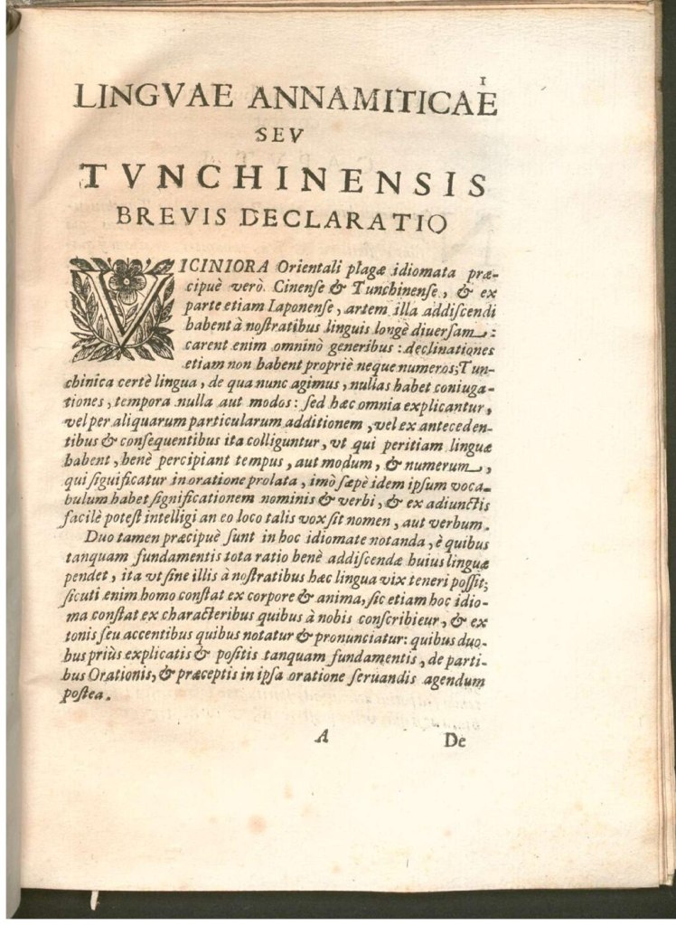 GAUDIO Andrew. (2019). A Translation of the Linguae Annamiticae seu Tunchinensis brevis declaratio. Journal of Vietnamese Studies, 14(3), 79–114.