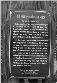 The article on Tuổi Trẻ Online cited above also presents the opinion of some researchers who believe that Nước Mặn is where Quốc Ngữ originated. The article quotes Mr. Trần Đình Trắc (a former lecturer at Qui Nhơn Pedagogical University before 1975) who stated that in 1972, he and several intellectuals in Bình Định submitted a proposal to the Advisory Council on Education of the Government of the Republic of Vietnam to build a monument and erect a statue of Alexandre de Rhodes to mark Nước Mặn’s role in the birth of Quốc Ngữ. Due to social instability caused by the war, the project was not carried out. Currently, there is a stele in Nước Mặn recording this historical detail (VÕ Đình Đệ, 2022).