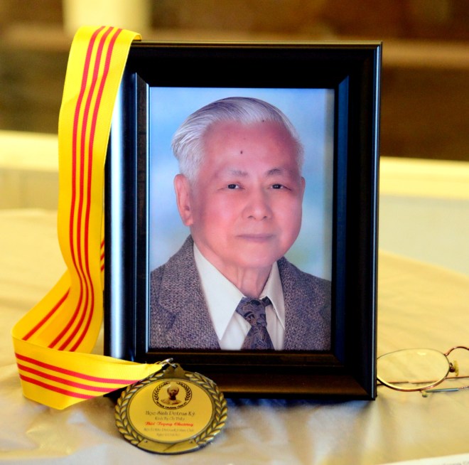 Di ảnh Thầy Bùi Trọng Chương với Giáo Dục Bội Tinh tại Tang Lễ của Thầy