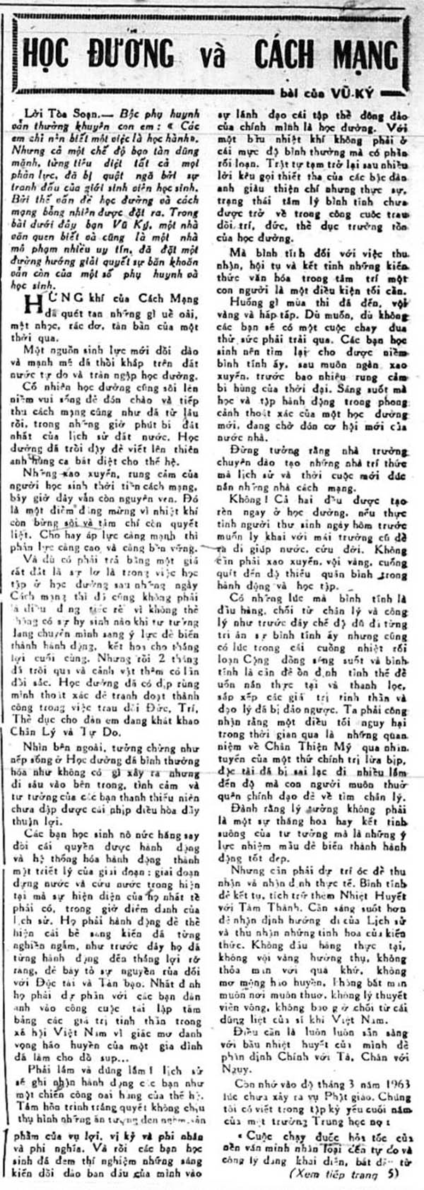 Học Đường Và Cách Mạng Vũ Ký (Nguồn: Nhật báo “Sống” số 1 ngày 15-1- 1964) (Võ Phi Hùng sưu tập) Share this: Click to share on X (Opens in new window) X Click to share on Facebook (Opens in new window) Facebook Like Loading...