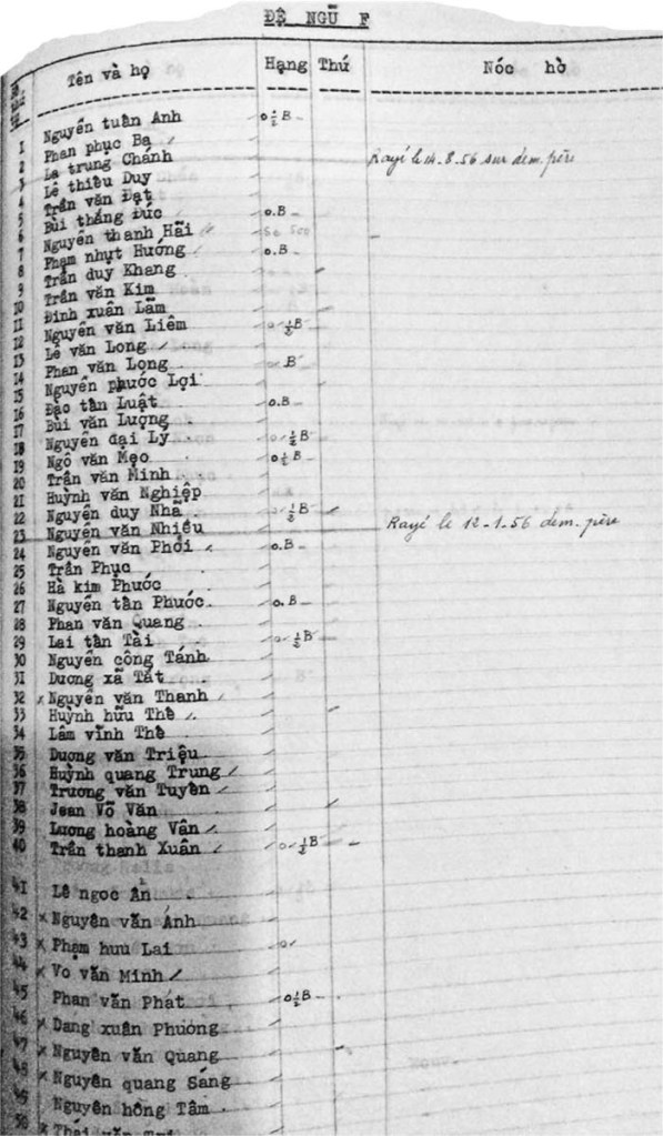 • 40 học sinh, từ số 1 đến số 40, là những học sinh từ Lớp Đệ Lục F (niên khóa 1954-1955) chuyển lên, và