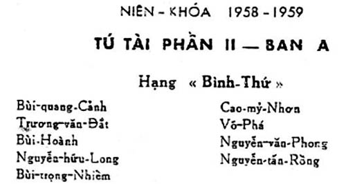 • 10 học sinh, từ số 41 đến số 50, là những học sinh từ các lớp đệ lục khác chuyển sang hay là những học sinh mới được Trường nhận thêm vào