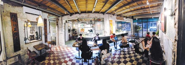 Quán S’mores Saigon caffè (quận 5, TP.HCM) với không gian thư giãn hòa quyện nét xưa và nay.