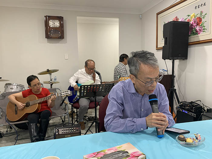 Hội trưởng Trần Thạnh chào mừng quan khách và tường trình tóm tắt sinh hoạt Hội Petrus Ký Úc Châu trong năm vừa qua cũng như phổ biến tin về lễ kỷ niệm 100 năm trường Petrus Trương Vĩnh Ký 2027.