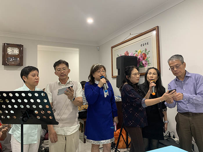 Cùng các ca sĩ cây nhà lá vườn và thân hữu: anh Nguyễn Anh Tuấn & chị Thanh Hương, anh Phan Công Quan và chị Nguyễn Đình Phượng Uyển, dâu PK Đăng Lan, PK Phạm Việt Hùng (nhà văn Phạm Nga), PK Trần Thạnh và dâu PK Thanh Bình, PK Nguyễn Văn Long và dâu PK Hồng Bích, dâu PK Nhật Thanh, rễ PK Đặng Minh Tuấn.