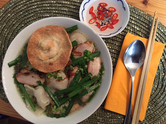 Những năm tháng du học xa nhà xa quê, thuở thập niên một chín sáu mươi, chưa có thông tin mạng, tôi mầy mò nấu lại những món ưa thích bằng khẩu vị và hình ảnh hàng quán đậm nét trong ký ức. Làm sao tôi quên được món mì hoành thánh tiệm Tàu bên cạnh đình Phú Hòa, góc đường Trần Quang Khải và Bà Lê Chân ở Tân Định. Món bún thịt nướng của bà gánh ngang nhà những sáng chủ nhật. Món cơm gà rô-ti chợ Cũ, món cháo cá đường Tôn Thất Thiệp. Món hủ tiếu Thanh Xuân chùa Chà. Món bún suông Phạm thị Trước, kế bên nhà hàng Thanh Thế, … Và nhiều món mặn, món ngọt ngon lành khác nữa.