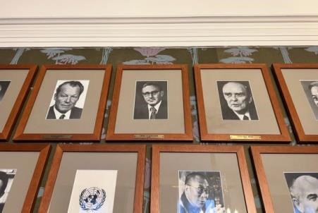 Portraits of Nobel Peace Prize laureates, including of Henry Kissinger, are seen in the meeting room where the Norwegian Nobel Committee holds its meetings at the Norwegian Nobel Institute in Oslo, Norway, January 3, 2023.