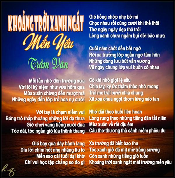 Khoảng Trời Xanh Ngát Mến Yêu Trầm Vân Share this: Click to share on X (Opens in new window) X Click to share on Facebook (Opens in new window) Facebook Like Loading...