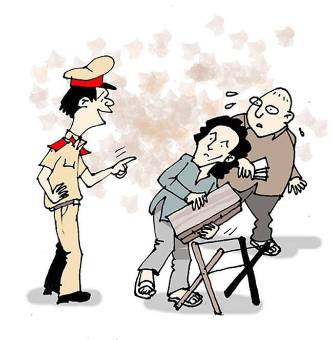 Bất ngờ, tui giựt mình báo động: “Bò Vàng!” Ðang cắm đầu kết sổ làm phơi để chuẩn bị đi giao cho Thầu đề, thằng chả nhìn lên; mặt mày xanh cành như đít nhái! Vì hai con ‘Bò Vàng’, công an phường An Lạc đi dẹp lòng lề đường đã tới sát ngay bên đít.