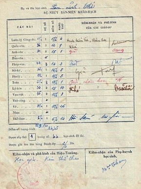 Điểm thi tất cả các môn của Đệ Nhứt Bán Niên