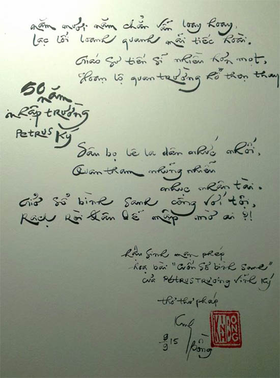 Tháng 9.2015 này, lớp học trò nhập học năm 1965 được tròn 50 năm từ ngày mang phù hiệu Petrus Trương Vĩnh Ký. Mấy ông lão đã qua tuổi đáo tuế sẽ tổ chức vui mừng bằng một cuộc gặp mặt, liên hoan những người đồng môn, đồng niên khóa.