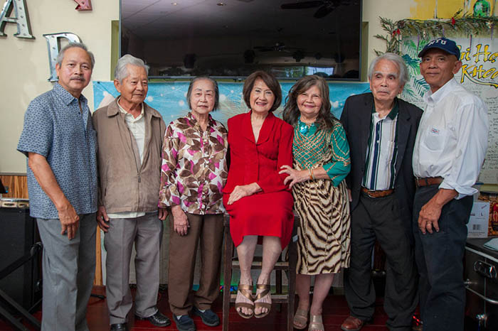 Cô và các học trò trước nhà hàng Saigon 9 nơi tổ chức tiệc họp mặt do hội PK Nam Cali tổ chức