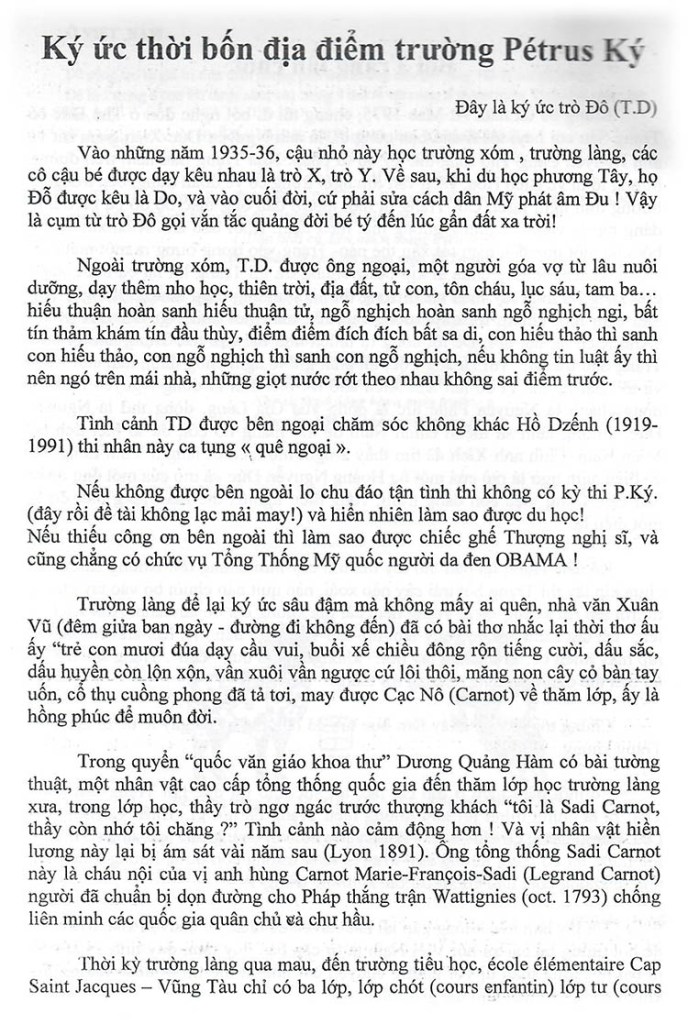 Ký ức thời bốn địa điểm trường Petrus Ký BS Đỗ Phước Hậu (Nguồn: Nội san số 67 – Xuân 2015, Hội Ái hữu Trung học Petrus Trương Vĩnh Ký tại Pháp) Share this: Share on X (Opens in new window) X Share on Facebook (Opens in new window) Facebook Like Loading...