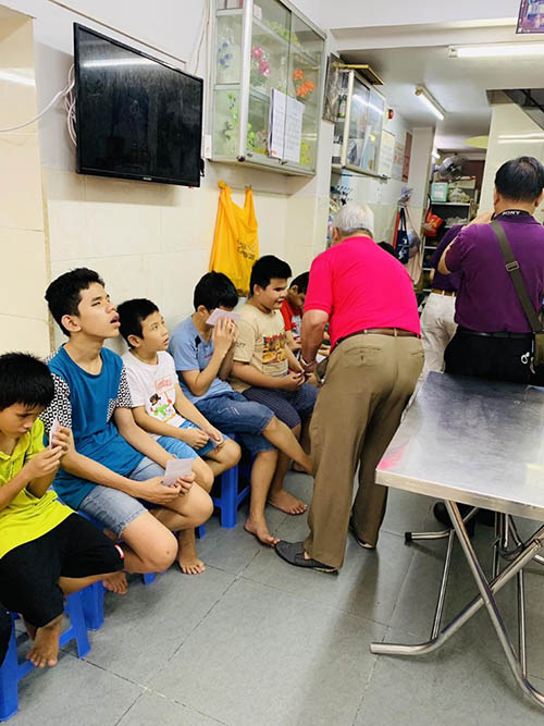 Dù từng thấy những người giảm thị lực ngồi đối diện ở chỗ làm gần 40 năm qua, nhưng khi Sơ Maria Hoàng đưa 30 trong tổng số 45 cháu ra chào khách viếng, thì nước mắt chỉ chực rơi.