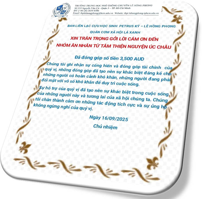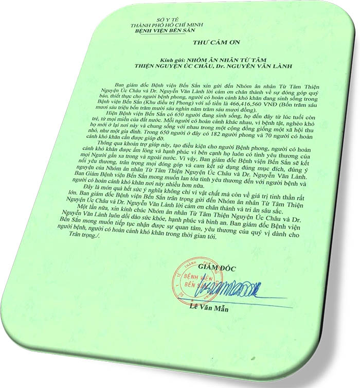 Không phải là những tưởng lệ chứng mà Dr Kinh Luân, Giáo Sư Trần Tam- Quốc Nam hay Dr Cát Từ thường nhận trước khi đi CP du học…mà đây là những lời cám ơn chân thành nhất từ những người khổ hạnh thiếu thốn nhất gởi đến Nhóm Ân Nhân Từ Tâm Thiện Nguyện Úc Châu… xin thành thật cám ơn các bạn đồng hành thiện nguyện.