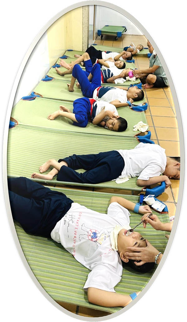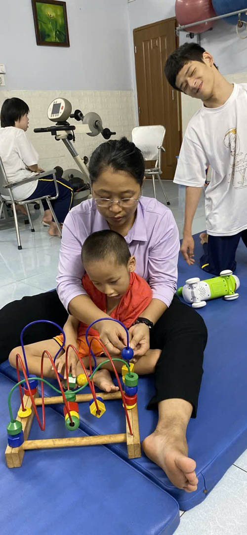Mái ấm chúng con có tất cả 50 em. Bao gồm: 38 em bại não – động kinh, 6 em bị Down và tăng động, 2 em bị Loạn dưỡng cơ, 2 em bị chậm phát triển trí tuệ, 1 em bị câm điếc, 1 em bị tự kỉ “ …..
