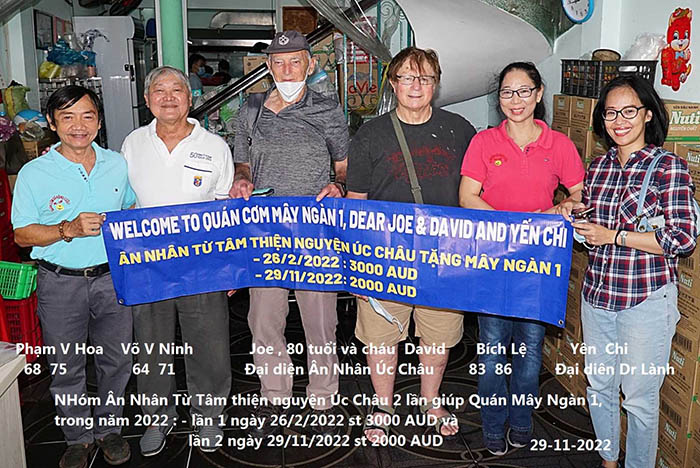 …… Đến Quán Cơm Thiện Nguyện Mây Ngàn 1 ( tên cũ QCNC7), Mái Ấm Bừng Sáng Q10 (nơi nuôi các trẻ khiếm thị), Gặp Hai Cháu Sinh Viên Y Khoa (Nhật Linh và Thu Hiền, con của trại viên Di Linh), Mái Ấm Mây Ngàn ( Tây Ninh, nơi săn sóc các trẻ mồ côi, những người già đơn chiết bệnh tật), Trại Phong Bến Sắn (Bình Dương), rồi trở lại Mái Ấm Bừng Sáng, sau khi đi bộ vòng các bệnh viện Sàigòn trong nhiều ngày rồi dừng chân tại Bệnh Viện Ung Bướu Gia Định, Bịnh Viện Từ Dũ, Bình Dân, một nổ lực lớn cho người vừa rời đông lạnh Sydney …