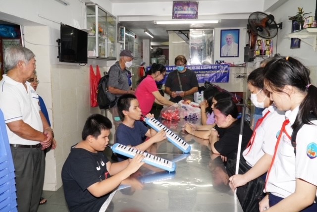 Tiếng Sơ Hoàng, người phụ trách săn sóc cho các cháu khiếm thị: ”Dạ cám ơn quý ân nhân hỏi, Sơ xin thưa, có lẽ lúc này, Sơ và các người săn sóc cho các trẻ ở đây, chỉ mong có được tiền đóng học phí cho hai em vừa tốt nghiệp lớp 12, nay muốn lên đại học, nhưng Sơ không đủ tiền, mỗi em phải đóng 10 triệu cho một năm học… hai em thích học quá đi thôi… nên xin Sơ đi mượn tiền cho mấy em đi học đại học, rồi mỗi chiều tan học, hai em sẽ dắt nhau đi bán vé số để trả nợ tiền học…”.