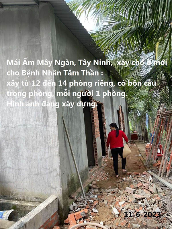 3- đang xây 10 phòng dự kiến cho 10 bịnh nhân tâm thần ( sẻ ở riêng từng người). Chổ cũ đã được phá bỏ