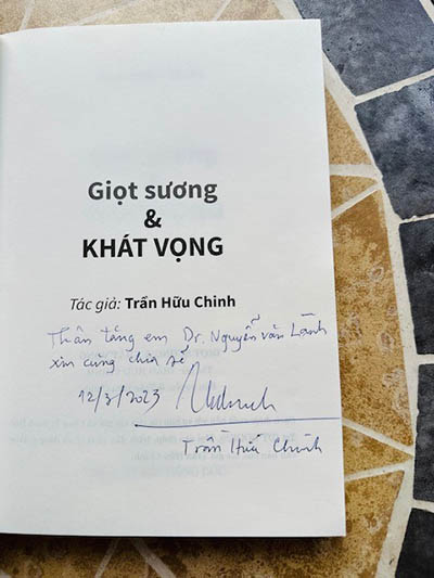 Sáng nay đọc lại cuốn sách: ”Giọt Sương và Khát Vọng“ của Kỹ Sư Hoá Học, Tiến Sĩ Quản Trị Kinh Doanh Trần Hữu Chinh tặng trên xe khi về Trại Phong Bến Sắn.