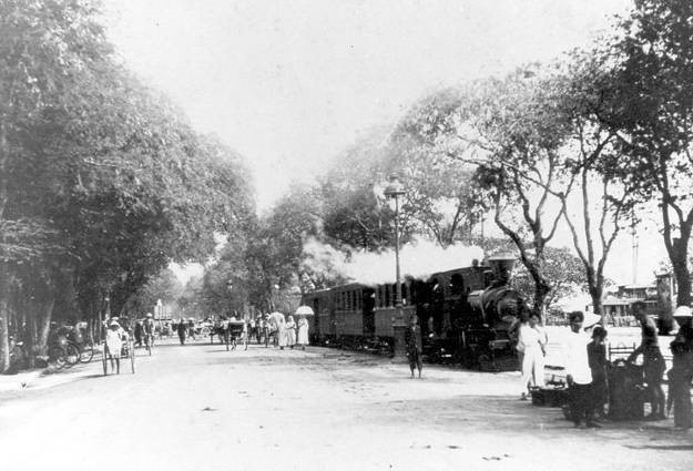 Đi xe điện thích lắm. Hai bên hông toa đầu máy có sơn chữ lớn màu vàng: “C.F.T.I.”, tìm hiểu thì đó là chữ tắt tên của Công ty “Compagnie Française de Tramways d’Indochine”.