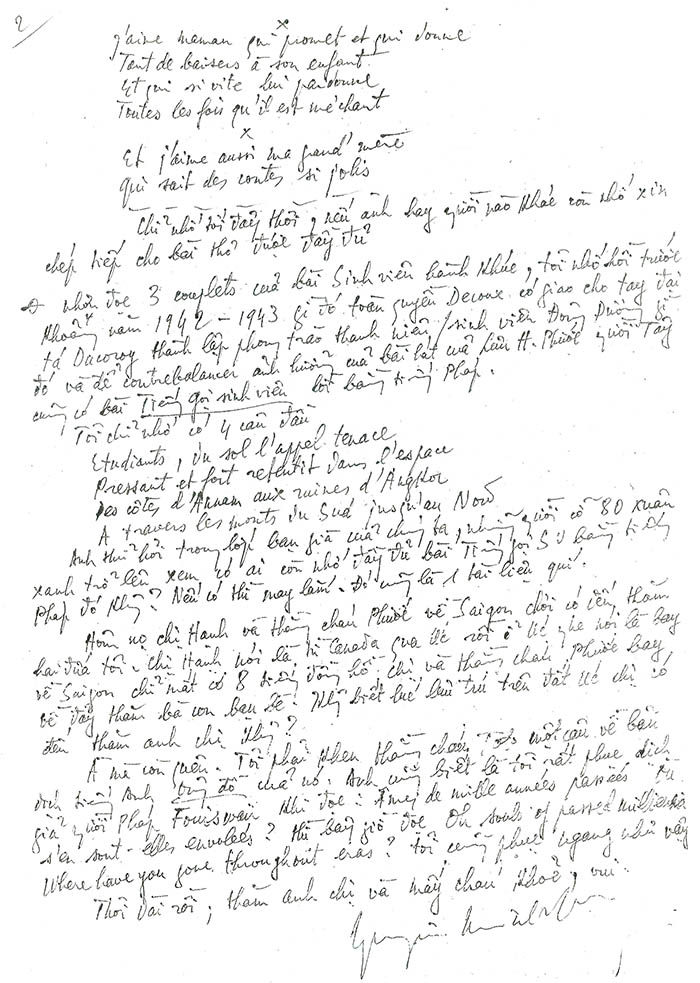* Nhơn đọc 3 couplets (11) của bài Sinh Viên Hành Khúc, tôi nhớ hồi trước khoảng năm 1942 – 1943 gì đó toàn quyền Decoux (12) có giao cho tay đại tá Ducoroy (13) thành lập phong trào thanh niên / sinh viên Đông Dương gì đó và để contrebalancer (14) ảnh hưởng của bài hát của Lưu H. Phước (15) người Tây cũng có bài Tiếng gọi sinh viên lời bằng tiếng Pháp.