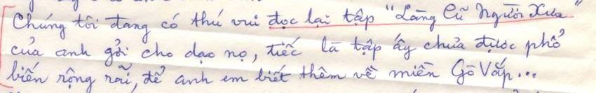 … Chúng tôi đang có thú vui đọc lại tập “Làng Cũ Người Xưa” của anh gởi cho dạo nọ, tiếc là tập ấy chưa được phổ biến rộng rãi, để anh em biết thêm về miền Gò Vắp …