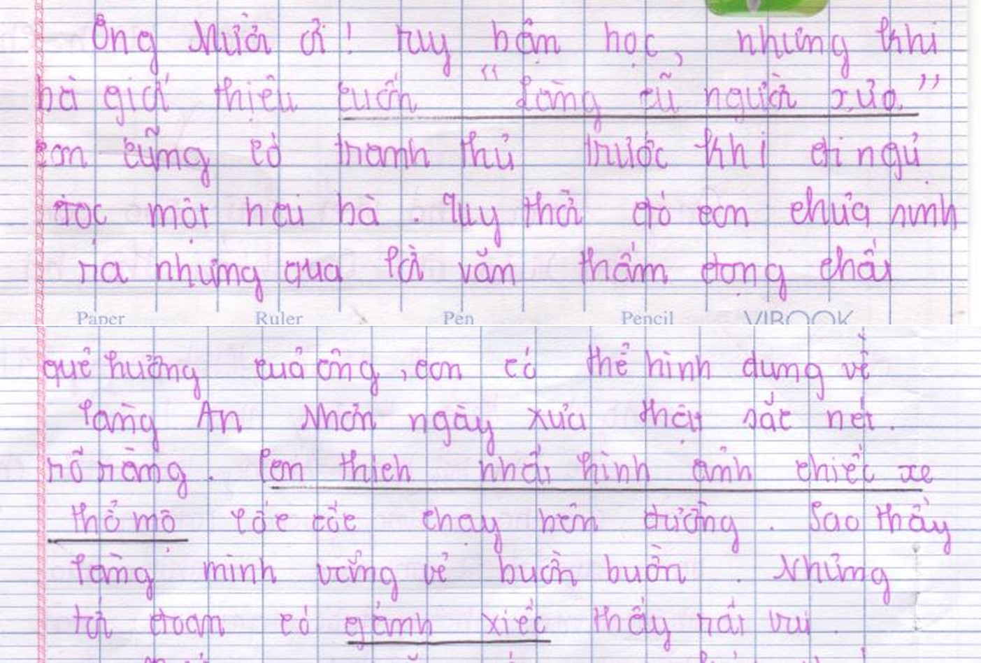 … ông Mười đã gửi cho bà cháu quyển sách “Làng cũ người xưa” rất hay. Cháu và mẹ cháu đã đọc rồi đều thấy hay và thú vị ạ. Mong ông bà sẽ có thêm nhiều cuốn sách hay như thế …