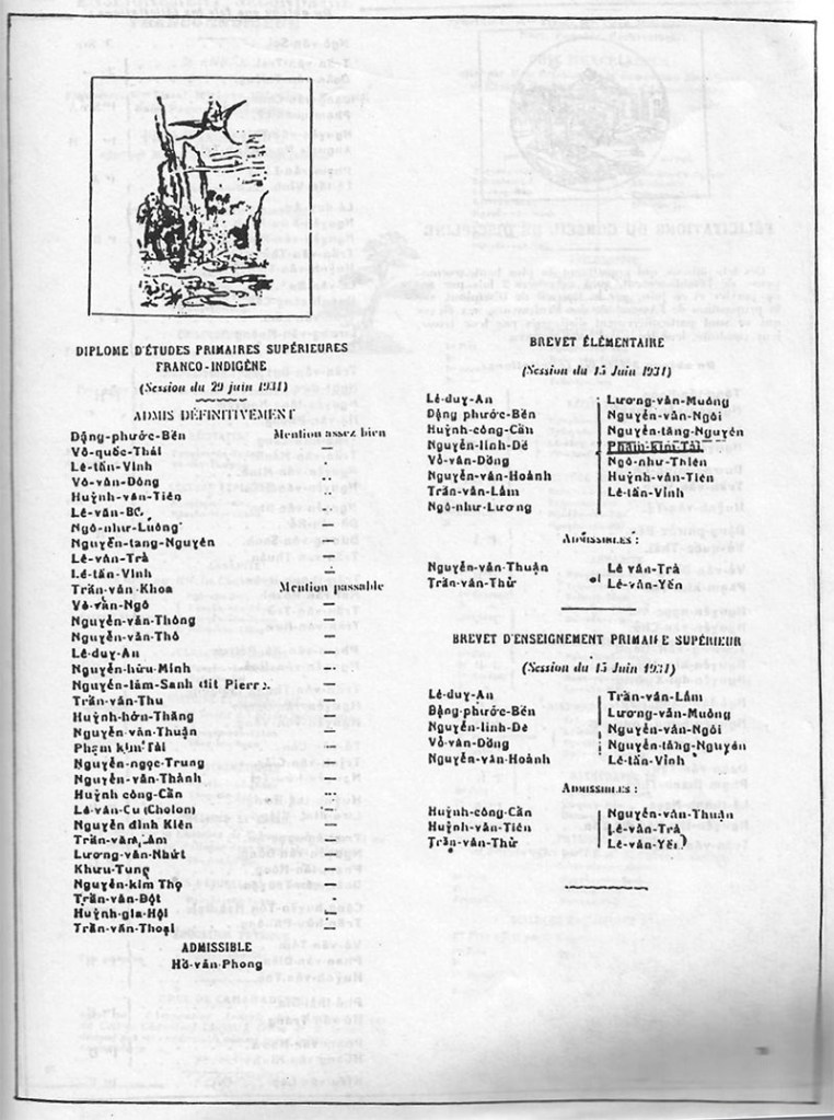 Brevet de Capacité de l’ enseignement secondaire Franco-Indigène – Session du 29 Juin 1931 (Văn bằng tốt nghiệp Trung học Pháp-Bản xứ – Khóa thi tháng 6 1931)