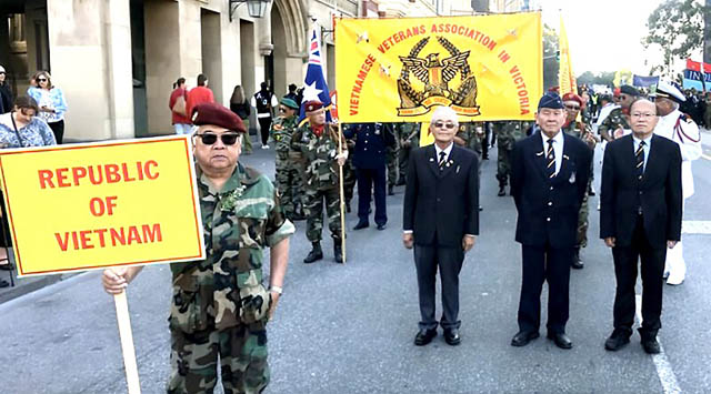 Ngày 25 tháng 4 hàng năm, vào ANZAC Day ở Melbourne, Australia, những người lính Việt Nam Cộng Hòa cùng với những người lính Úc diễn hành khoảng 2 km, bắt đầu từ khu vực trung tâm Melbourne qua Swanston Street và kết thúc tại Đài tưởng niệm ANZAC, nằm ở công viên **Kings Domain**.