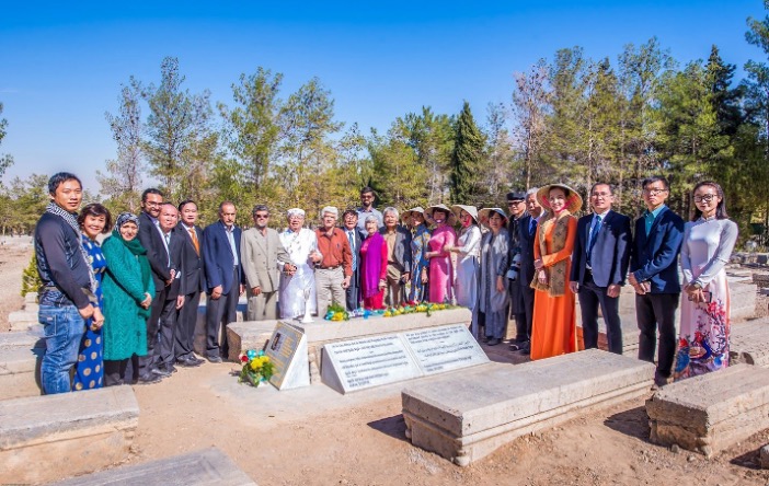 Hình 8: Ngày 5/11/2018, nhân kỷ niệm 358 năm ngày mất của Alexandre de Rhodes, một phái đoàn người Việt Nam do GS Nguyễn Đăng Hưng (mặc quốc phục trắng) dẫn đầu đến viếng và đặt bia vinh danh ông tại Isfahan. Nguồn: internet