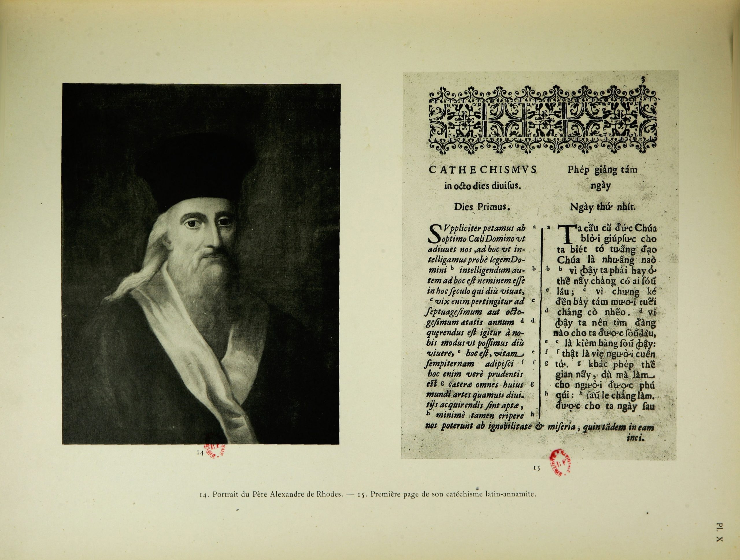 Hình 4: Chân dung của Alexandre de Rhodes và một trang trong sách Phép giảng tám ngày (Nguồn: Vietnamese Heritage Museum)