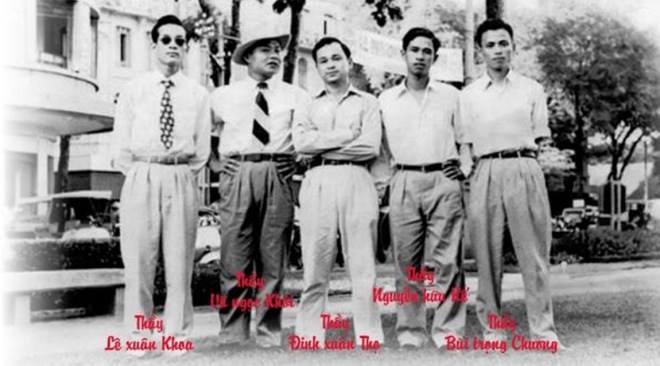 Ngũ Hổ Tướng Petrus Ký – Từ trái qua: Thầy Lê Xuân Khoa, Thầy Vũ Ngọc Khôi, Thầy Đinh Xuân Thọ, Thầy Nguyễn Hữu Kế, và Thầy Bùi Trọng Chương.