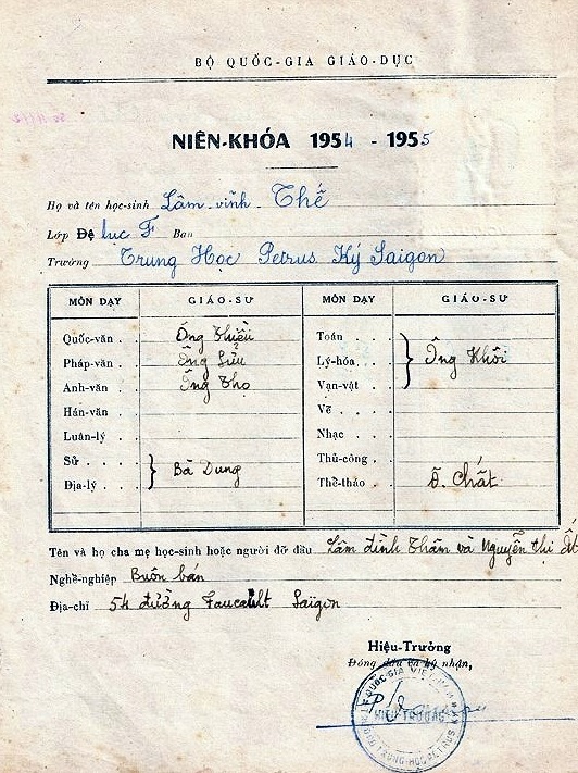 Tựu trường niên khóa 1954-1955, tôi lên lớp Đệ Lục F. Năm 1954 là một năm đầy những biến động lớn, rất lớn, của đất nước: