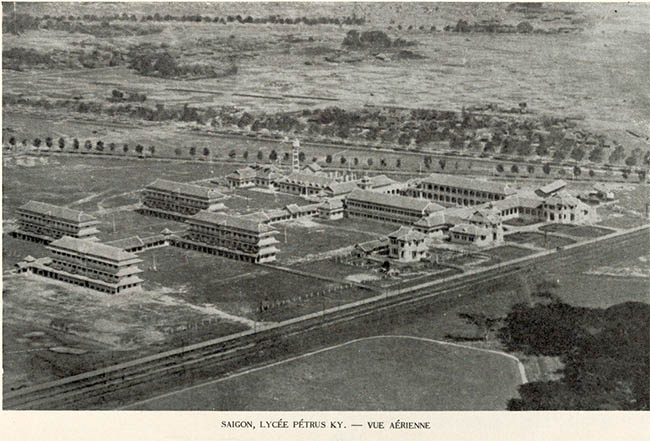 Nhìn từ trên cao, ngôi trường chỉ mới chiếm 1/4. Hàng rào mà chúng ta thấy chỉ là ranh giới tạm thời. Trường và các dãy phụ thuộc thật ra nằm trên một miếng đất 13 mẫu, hình thang, bao chung quanh bởi 4 con đường. Con đường chạy dài theo tổng thể của các khu đã xây, cắt xéo tấm hình, chính là ranh giới của hai thành phố: Saigon ( dưới, bên phải ) và Chợ Lớn ( phía trên , trái ).