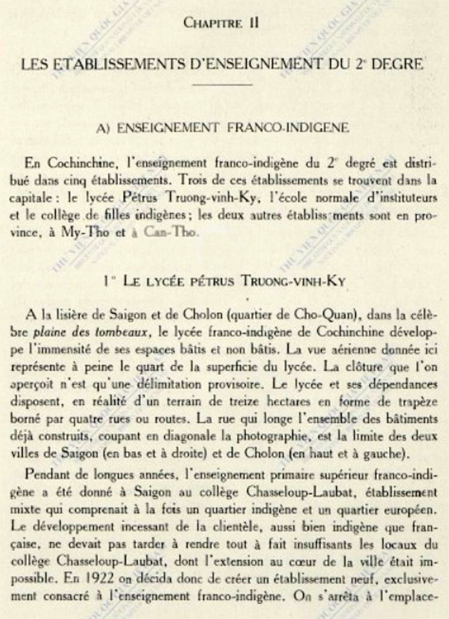 Bài này được trích trong Chương 2 của quyển: La Cochinchine scolaire : L’enseignement dans le pays le plus évolué de l’union Indochinoise, 1931