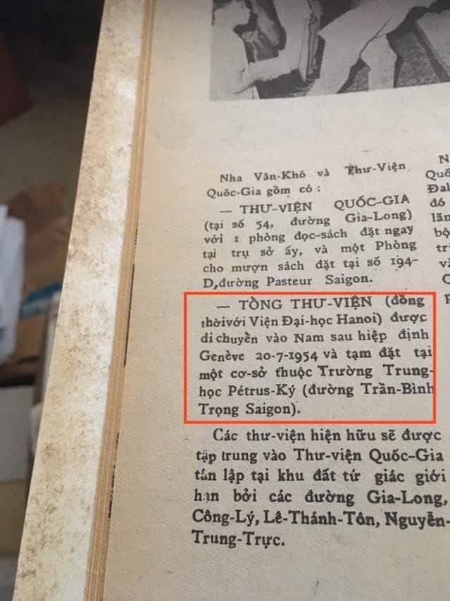 Hình 5. Tài liệu trích dần về sự hình thành của Tổng Thư Viện ở trường Petrus Ký.