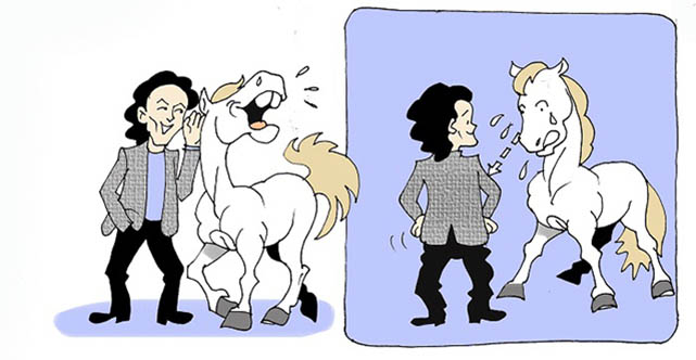 Rồi có chủ ‘pub’, muốn câu khách, bèn bày ra một cuộc thi: “Bổn quán có con ngựa! Ai làm cho con ngựa của bổn quán cười, thưởng 1,000 đô!” Mr. Bean từ Anh Cát Lợi qua thi, cũng chịu thua. Vậy mà một anh Việt Nam Mít lại dám xin vào thi thố. Anh thầm thì cái gì đó; con ngựa cười hăng hắc không thôi! Lãnh 1,000 đô!