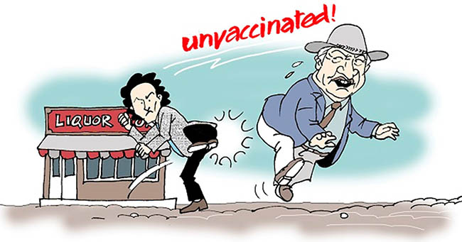 Chiều Chủ Nhật, Katter đi nhậu. Nhân viên phục vụ quán rượu kêu ông dân biểu đưa coi cái giấy chứng nhận đã chích ngừa. Katter cà khịa biểu chủ quán Tamworth gọi điện đến Quốc hội Liên bang ở thủ đô Canberra để xác minh tình trạng chích ngừa của ông. Chắc Katter muốn khoe: “Tớ là dân biểu Liên bang Úc đó nhe! Ðừng có mà giỡn mặt!”