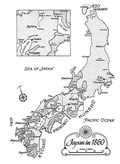 Hình 1: Bản đồ nước Nhật năm 1860. Nguồn: Tài liệu tham khảo số [3].