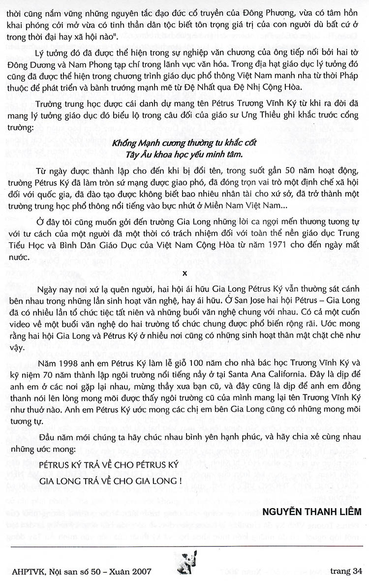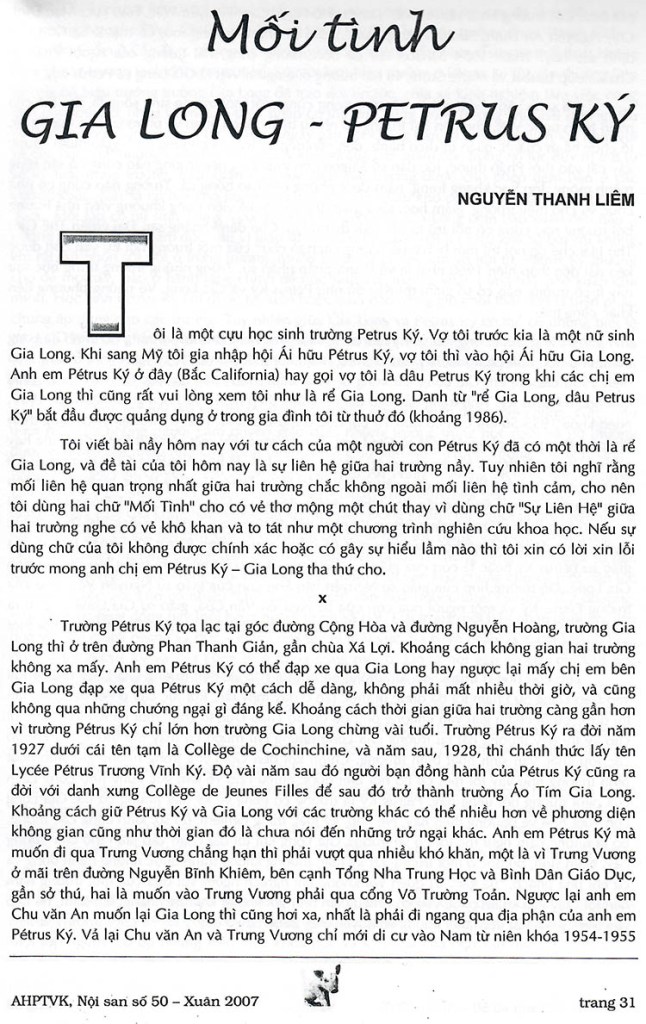 (Nguồn: Nội san Xuân Đinh Hợi 2007 (số 50), Hội AH trung học Petrus Trương Vĩnh Ký tại Paris Pháp)
