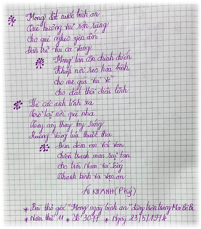 Bài thơ “Mong ngày bình an” đăng trên trang Mai Bê Bi
