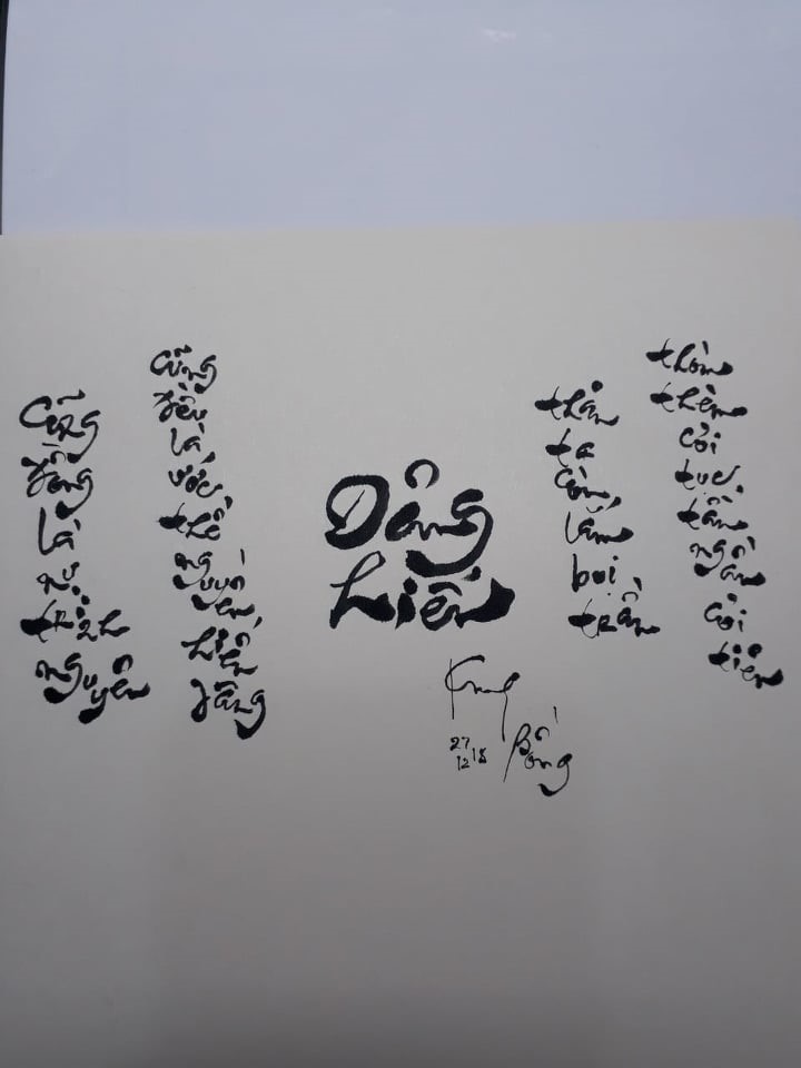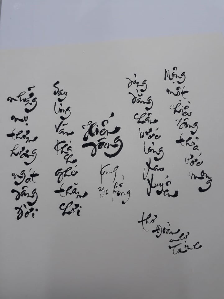Tôi, một người đam mê thơ thư pháp, sau đó bèn đối lại bằng bài thơ thư pháp. Hai bài thơ thư pháp ra đời trong bối cảnh trên