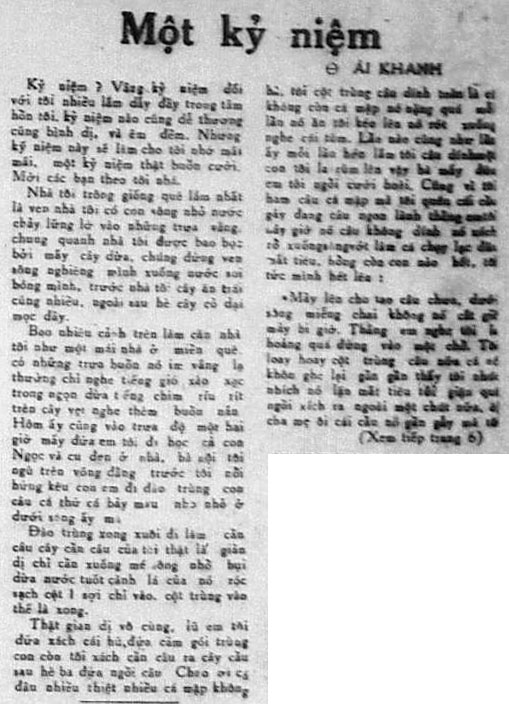 Bi giờ ngồi nhớ lại, tôi thấy cười cho chính tôi, lớn già đầu còn ham câu cá làm gì để cho té sông mới chịu, thật là một kỷ niệm khó quên trong đời tôi các bạn ạ…